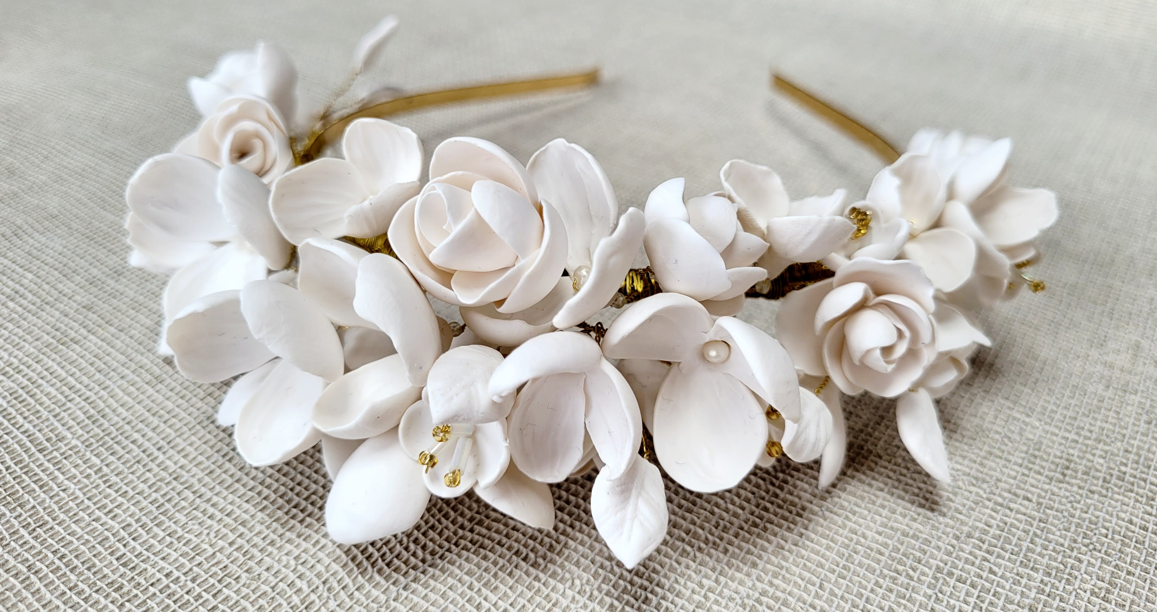 Floral bridal accessories with handscupted flowers, all made and customised for you in our Auckland studio. Creating the perfect accessories to compliment your dream wedding day style.
